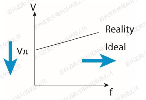 從上麵基礎公(gōng)式(shì)可以發現,調製器的半波電壓所關聯的物理參數都是和(hé)射頻信號的頻率無關的,那(nà)麽為什麽會出現VpRF隨(suí)頻率變化的現象(xiàng)呢?
