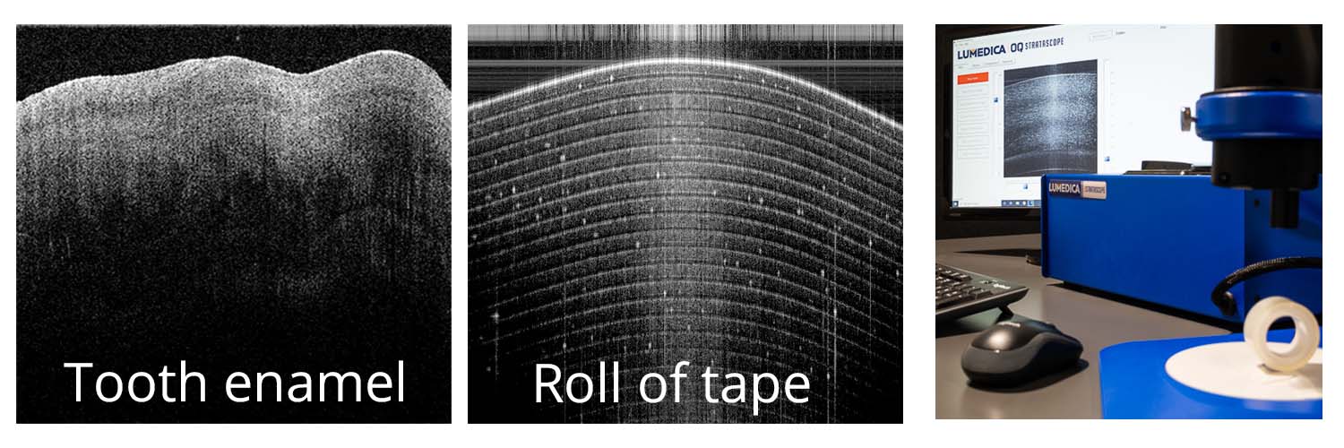 OCT可以測量層(céng)厚度(dù),識別空隙(xì),並繪(huì)製地形圖。例如:汽車油漆的厚度和均(jun1)勻性、藥丸(wán)塗層和(hé)其他保護塗(tú)層。OCT也(yě)可用於防偽造指紋掃描儀,以驗證或授權設備訪問。