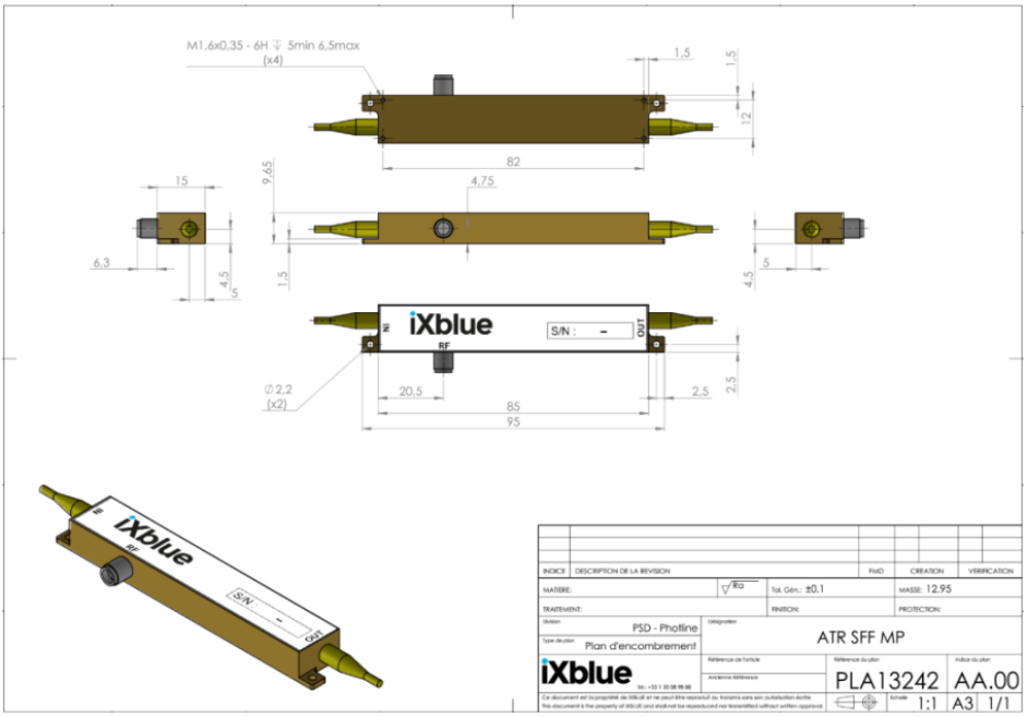 新型近紅外铌(ní)酸鋰相(xiàng)位調製器NIR-MPZ-LN-20是法國iXblue公司最新研發設計的20GHz,低插損、低半(bàn)波電壓950-1150nm波(bō)段(duàn)相位調製器,最大光功率+25dBm,最大射頻功率為+33dBm;非(fēi)常適合於激光合束(shù)、光譜展寬、激光頻率梳等應用。