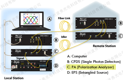 PA-1000 是(shì)一種計算機(jī)控製的光纖耦合偏振分析儀,由一個校準的偏振控製器(qì)和一個線性偏振(zhèn)器或一個偏振分束器組成。 四個或更多可(kě)變波片的光軸相(xiàng)互成 45° 角,執行偏振控製(zhì)。 它通常用於(yú)在測(cè)量光的偏振糾纏態時選擇所需的基態。 PA-1000 可以操作通過 USB 端口控製的獨立設(shè)備(bèi),也可以與其他設備(如 NuCrypt CPDS-1000 檢測(cè)係統和 NuCrypt Quantum 係(xì)統控製軟件)集成,以實現自動量子測量,例如兩 光子幹涉 (TPI) 條紋和量子態斷層掃描 (QST)。