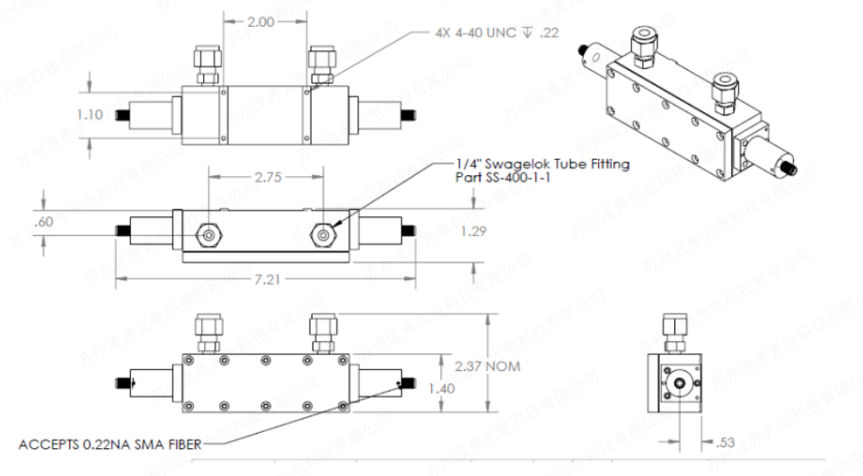 1.流通池有(yǒu)四個安裝孔,底部有4-40螺紋。