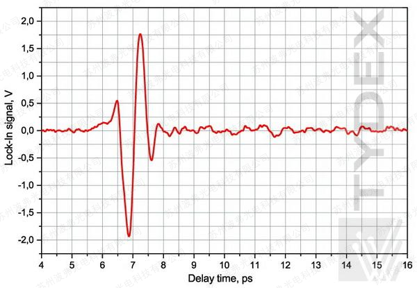 信號光束通過(guò)光(guāng)學延(yán)遲線,然(rán)後由反(fǎn)射鏡係(xì)統聚焦到同(tóng)一個EOD晶體中。EOD信(xìn)號(TDS係統直接測量太赫茲脈衝的電場)由同樣控(kòng)製(zhì)延遲線的(de)軟件接收。 該軟件包括將EOD信號轉換(huàn)為頻譜(pǔ)的數學裝(zhuāng)置。