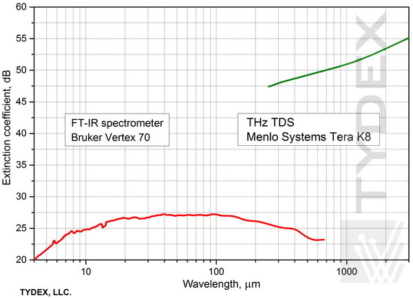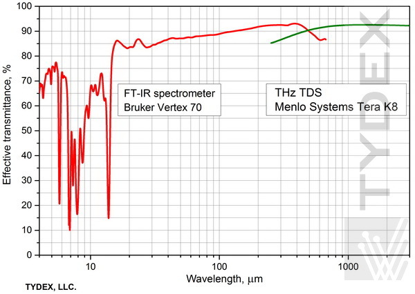 偏(piān)振器的透射光譜(pǔ)由兩台儀器測量。 在 0.9 – 670 μm (333.1 – 0.45 THz) 的短波範圍內,使用了 FT 光譜儀 Bruker VERTEX 70。 在 150 – 3000 μm (2 – 0.1 THz) 的(de)長波範圍內,我們使用了帶有 600 μm 偶極天線 (fc=0.5 THz) 的 Menlo Systems TERA-K8 太赫茲時域光譜(pǔ)儀。