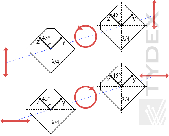 偏(piān)振測量技術對於(yú)分(fèn)析太赫(hè)茲輻射(發散、空間或頻(pín)率模(mó)式和剖麵)非常重(chóng)要(yào)。 偏振測量的(de)關鍵儀器是偏振(zhèn)調製器,它可以識別和測量偏振信號。由雙(shuāng)折射材料製成的(de)平平板用於改(gǎi)變輻射的偏振態。 波片通過移動波的兩個垂(chuí)直偏振分量之間的相位來工作(zuò)。 最(zuì)常見的波(bō)片(piàn)類型是半波片(λ/2 片)和四分之一波片(λ/4 片)。 λ/2 板給出相位延遲 π 和 λ/4 板 — π/2。 半波(bō)片改(gǎi)變(biàn)線偏振光(guāng)的偏振方向。 四分之一波片將線偏振光變為圓形,反之亦然。 如果偏振方向沿波片軸之(zhī)一,波片不會改變線偏振光束的偏振。