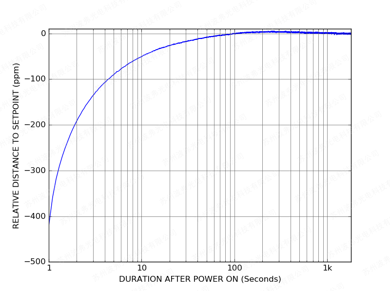 隨後上電後,CTL101控製器隻(zhī)需一分鍾(zhōng)即可將激光電流穩定在設定值的10 ppm範圍內: