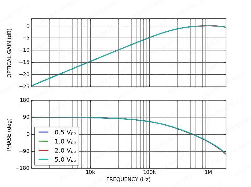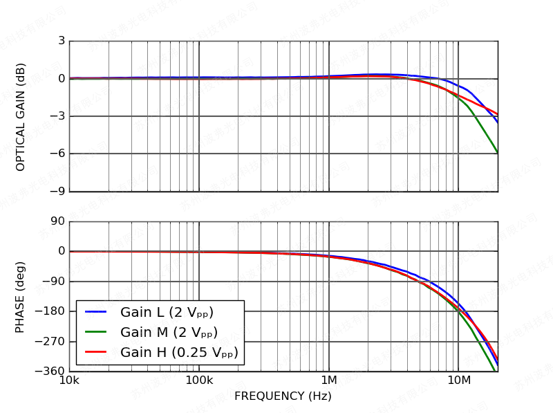 交流調(diào)製輸入可用於調製1 MHz以上的激光器,調製增益為20 mA/V:
