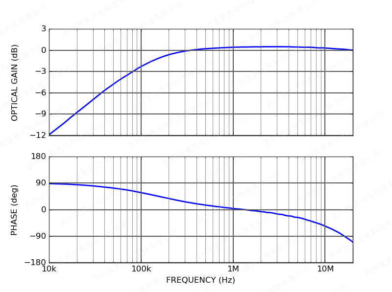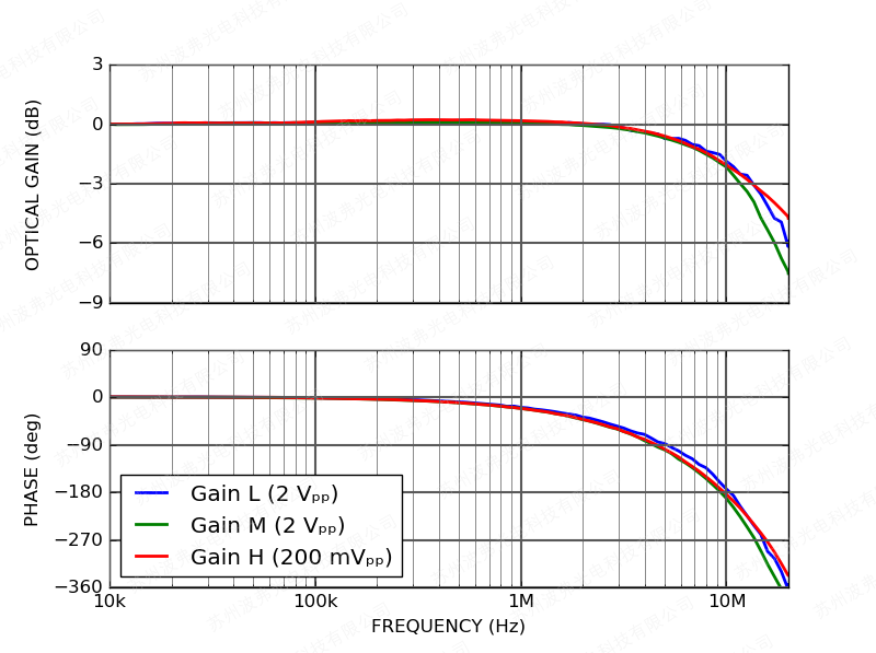交流調製輸入可用(yòng)於調製100 kHz以上的激光,調製增益為20 mA/V: