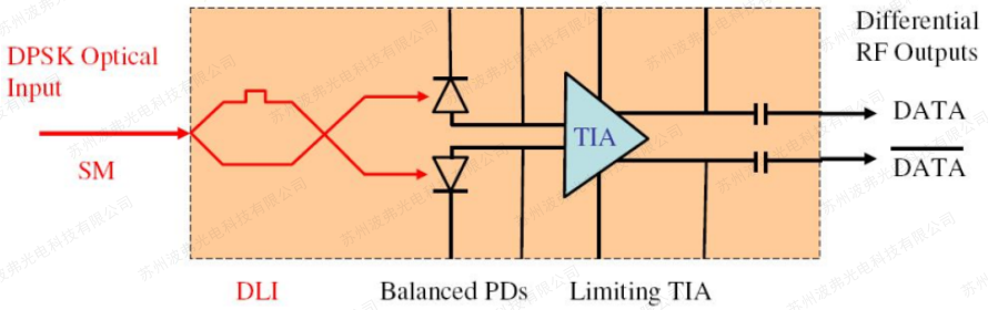 集成的DPSK接(jiē)收器將延遲線幹涉儀(DLI)與平衡接收器相結合,以在蝶形封裝中實現緊湊的尺寸。與分立元件相比,集成接收器將來自DLI的光輸出直接耦合到平衡光電(diàn)探測器,除了消除光纖路由(yóu)和匹配之外,還可以(yǐ)減少插(chā)入損耗和低通(tōng)道偏移。