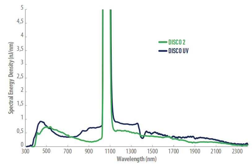 DISCO的光譜範圍低至紫外線,具有出色(sè)的使用壽命。DISCO是時間(jiān)分辨光(guāng)譜實驗中探測光產生的理想替代品。