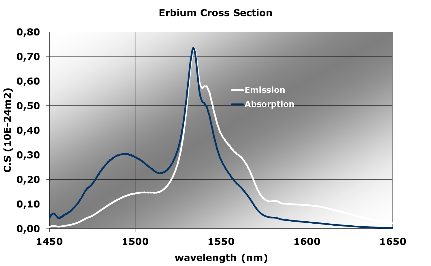 | Er吸收截麵 @ 1536 nm (m²) | 5,90E-25 |