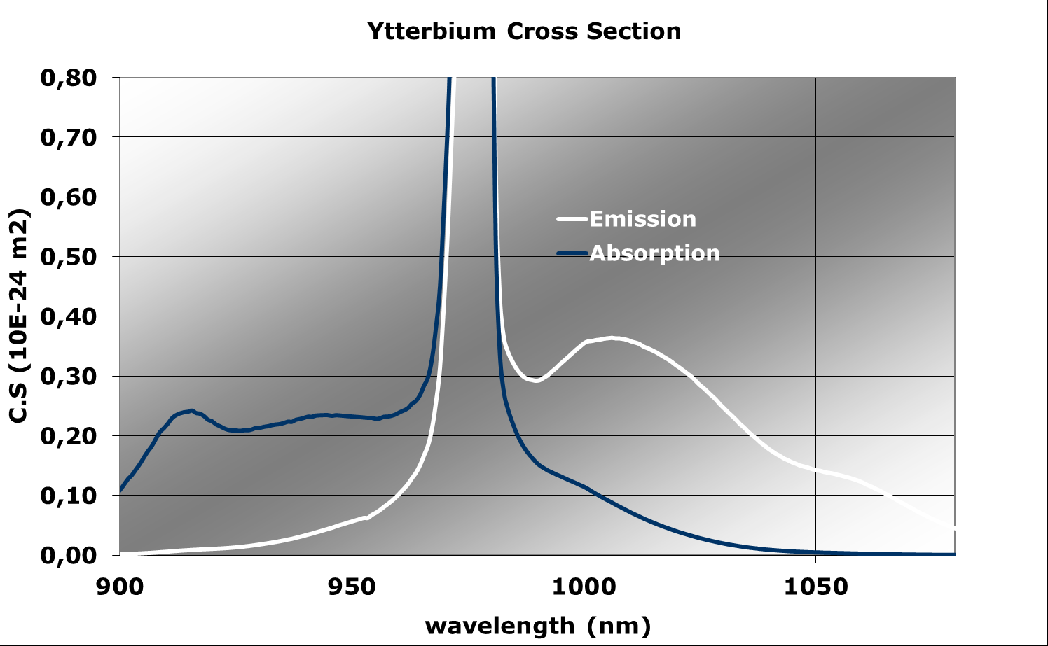 | Yb吸收截麵 @ 915nm (m²) | 2,51E-25 |