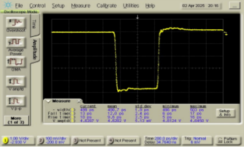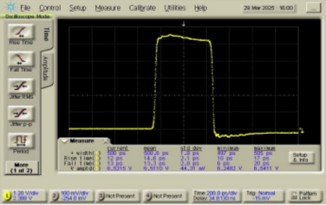 500ps脈寬 @時鍾頻率. 100kHz,輸出電平(píng) 4.6Vpp