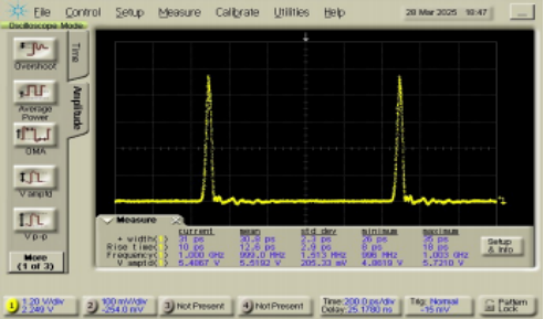 30ps脈寬 @時鍾頻率. 1GHz,輸出電平 5.4Vpp