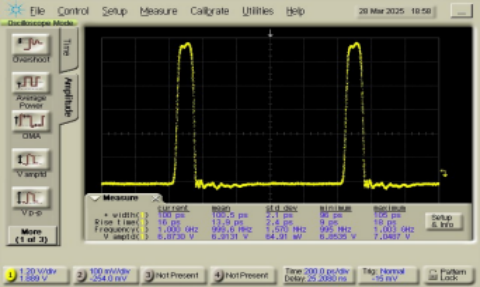 100ps脈寬 @時鍾頻(pín)率. 1GHz,輸出電平 6.8Vpp