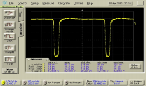 30ps脈寬 @時鍾頻(pín)率. 100kHz,輸出電平 5.2Vpp