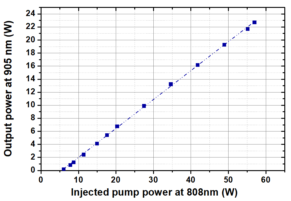 IXF-2CF-Nd-PM-30-130光纖用於放大(dà)器配置,以(yǐ)增加905 nm脈衝激光,在40 kHz的(de)重複率下實現高(gāo)達24 W的平均功率,脈衝持續時間為45 ns。采用倍頻技術,在452nm處達到4.9W,在226nm處(chù)達到0.5W。